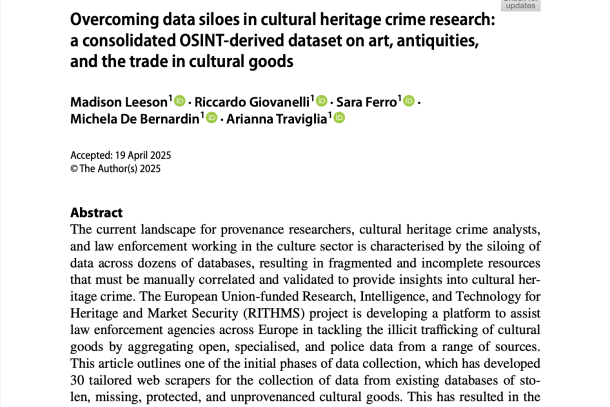 Smith, E., Austin, S. (eds) Researching a Rigged Game: Digital Approaches to Tracing the Illicit Trade in Cultural Objects. Studies in Art, Heritage, Law and the Market, vol 11. Springer 2025
